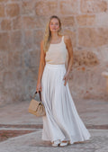 - Corte suelto y escote cuadrado.