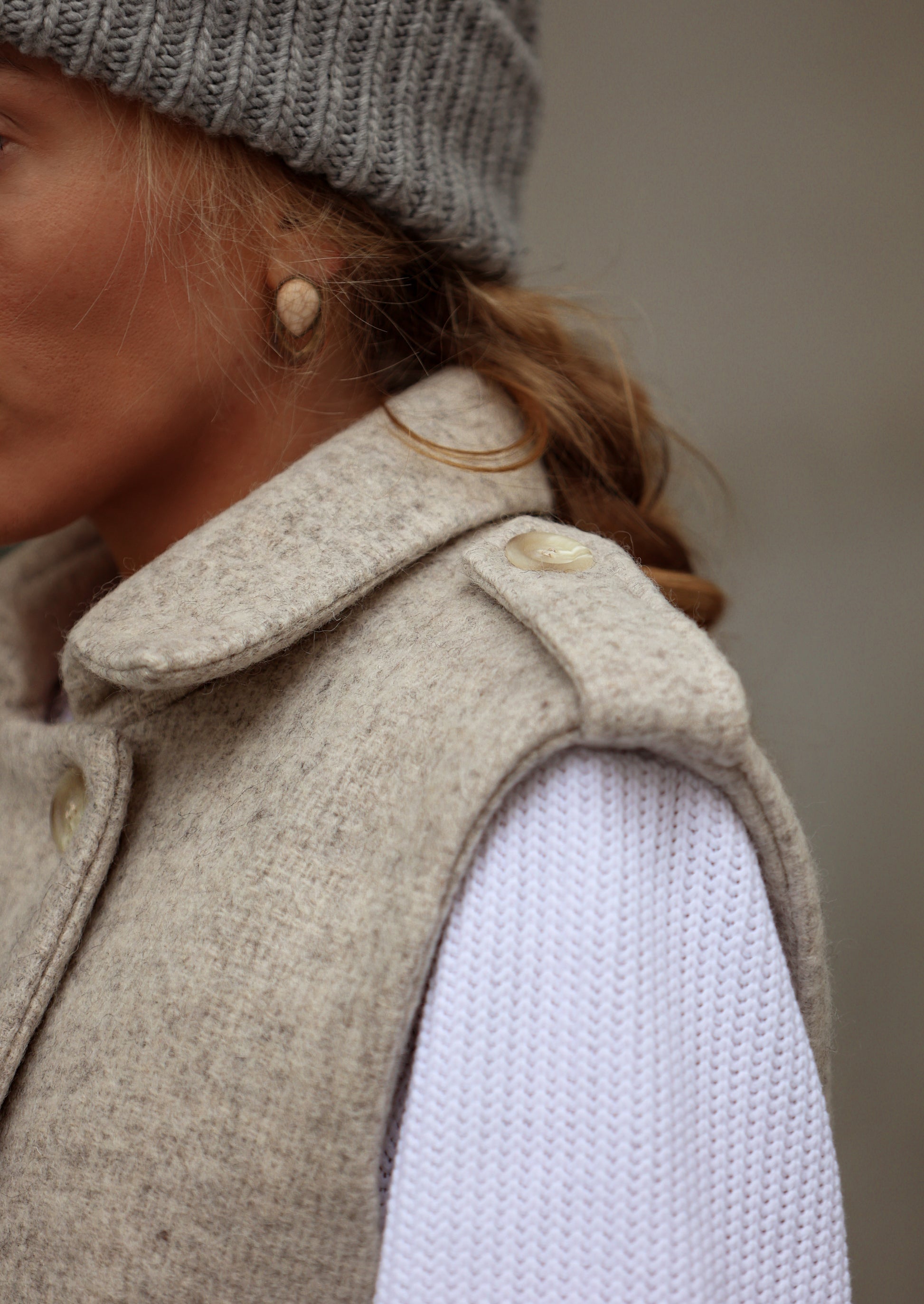 - Chaleco 100% lana en color gris.