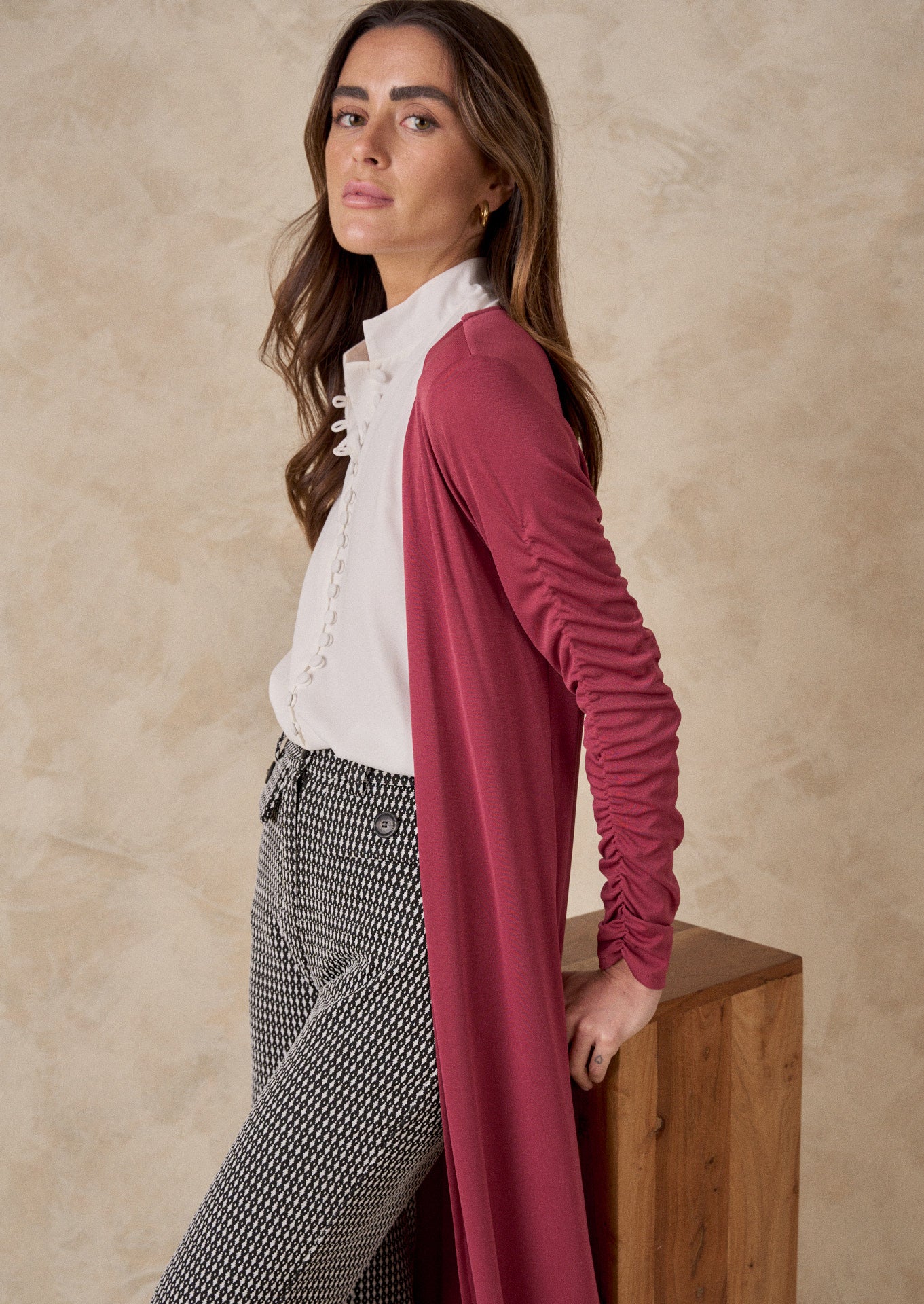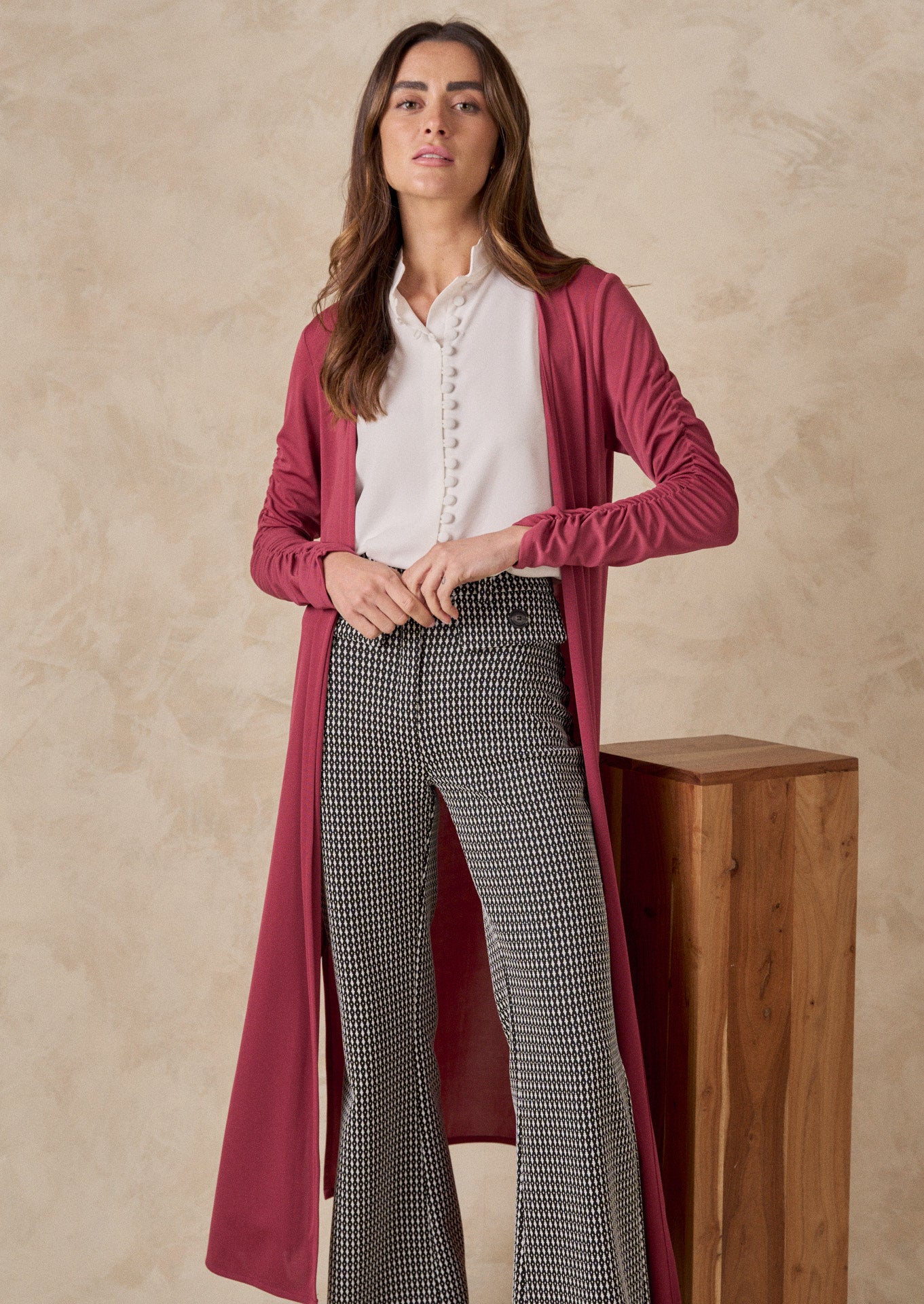 - Chaqueta confeccionada en un espectacular punto de crepe en color terracota.
