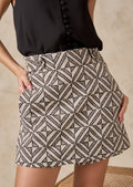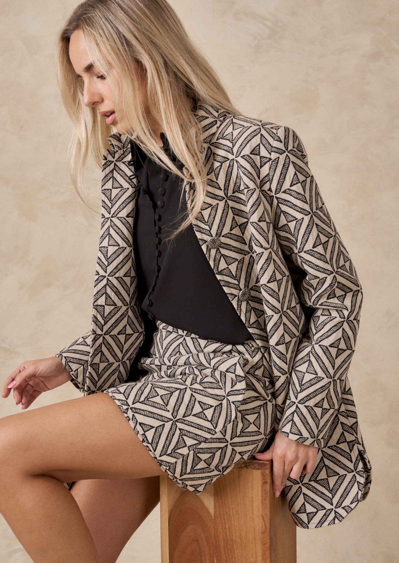 '-Falda pantalón confeccionada en jacquard en tonos negro y crudo.