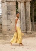 - Construcción con diferentes piezas que crean la silueta evasé.