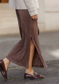 - Falda de crepe rayado confeccionada al bies con goma invisible en cintura.