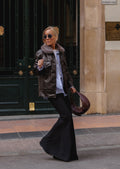 - Altura modelo: 168. Lo lleva con tacón de 6 cm.